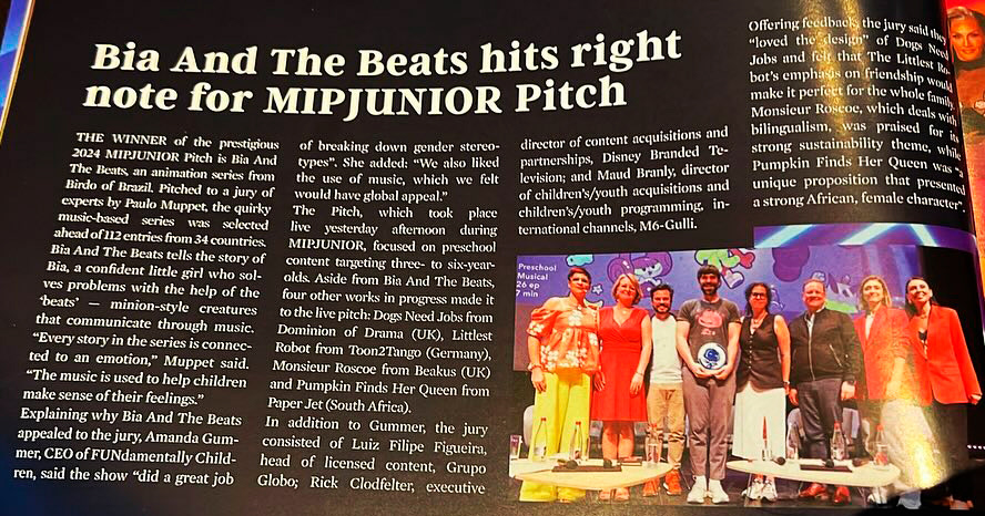 SO FAR BIA & THE BEATS' PITCH HAS WON 1ST PLACE AT THE PITCH ME CARTOONITO CONTEST AND AT THE MIPJUNIOR FESTIVAL IN CANNES.